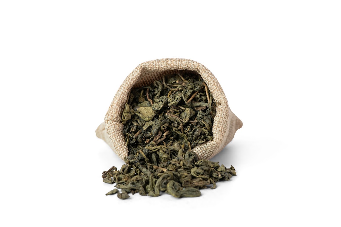 עלי תה ירוק להכנת חליטת תה בריאה, סך הכל להוסיף מים ולסנן.